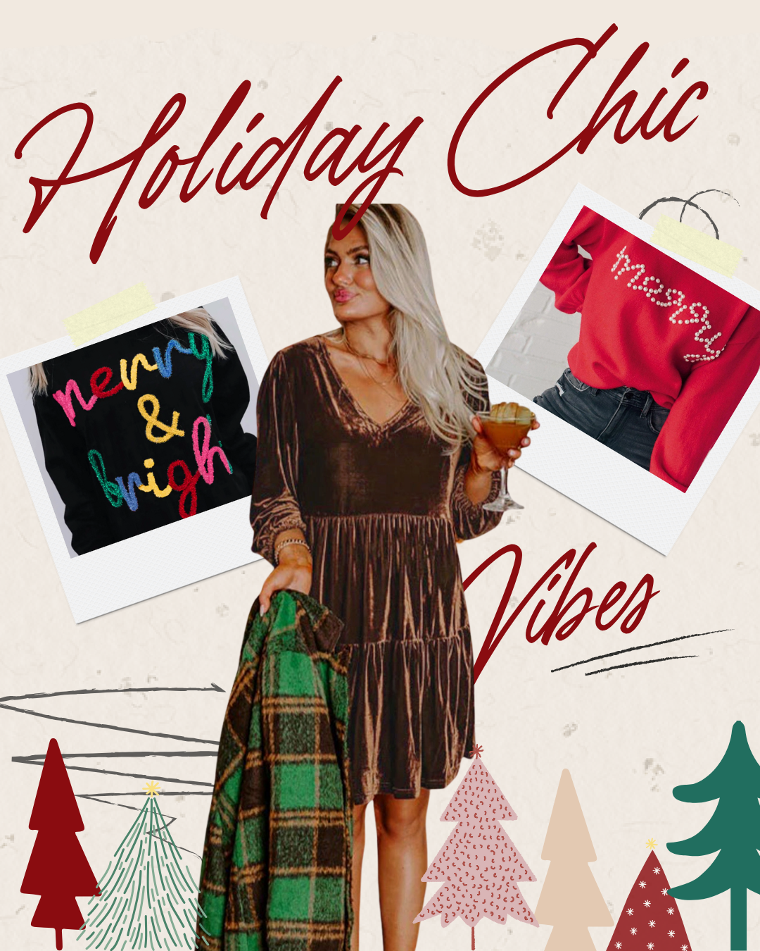 Festive, fun, and flirty for your upcoming holiday parties and gatherings. Comfy PJ sets on the way to change into after!